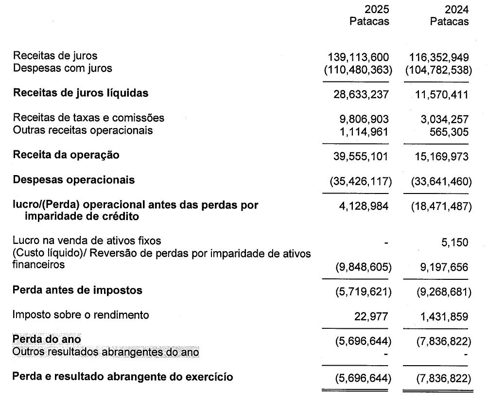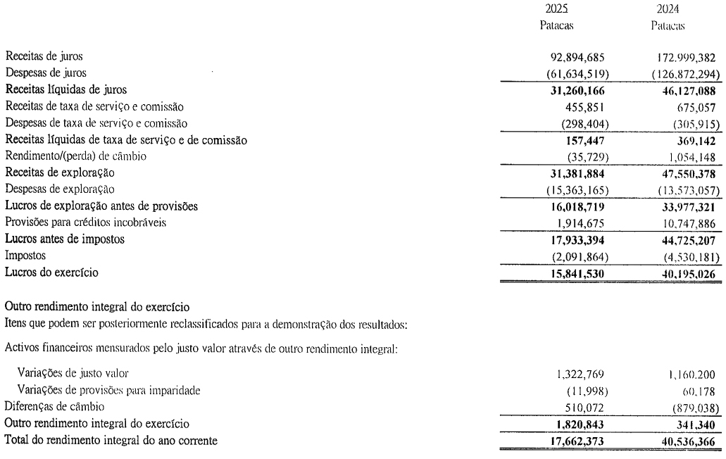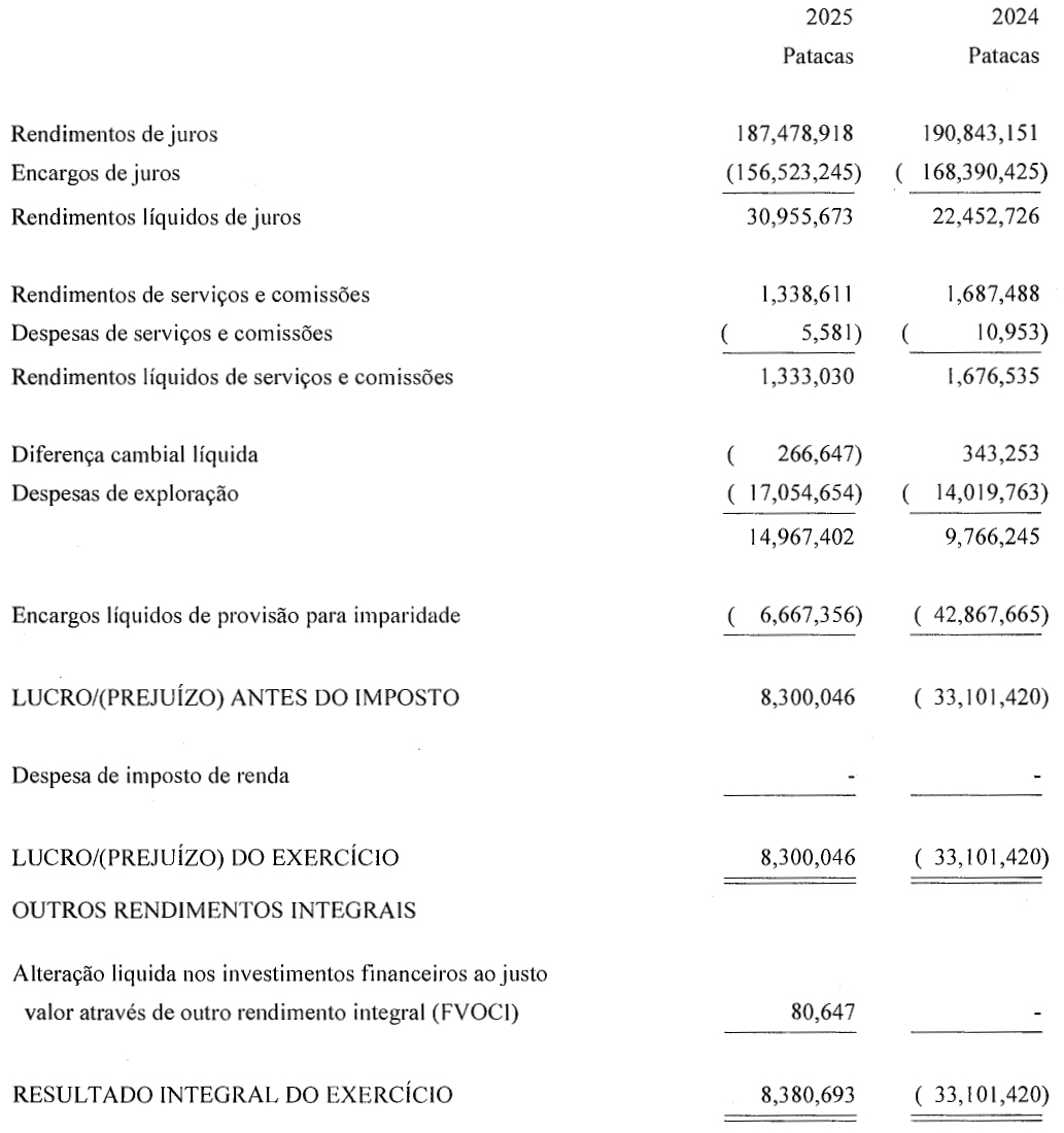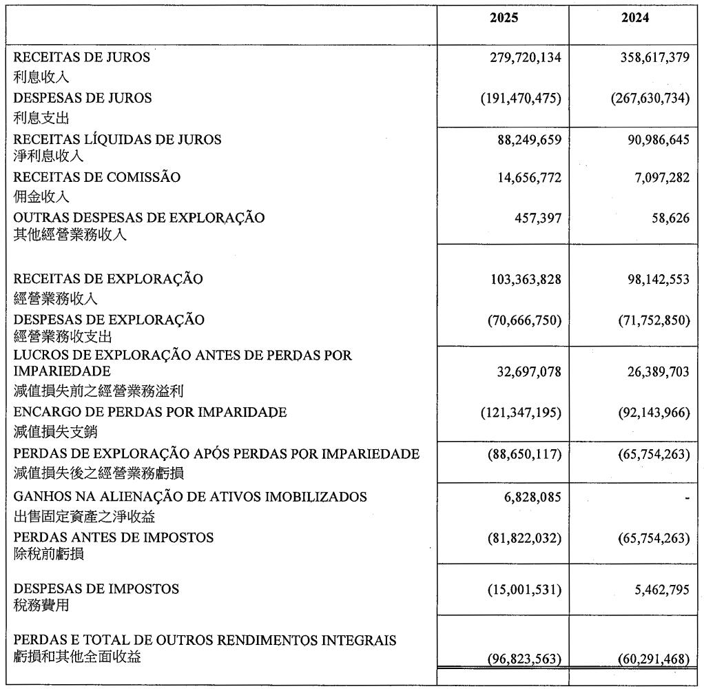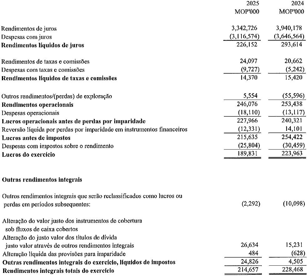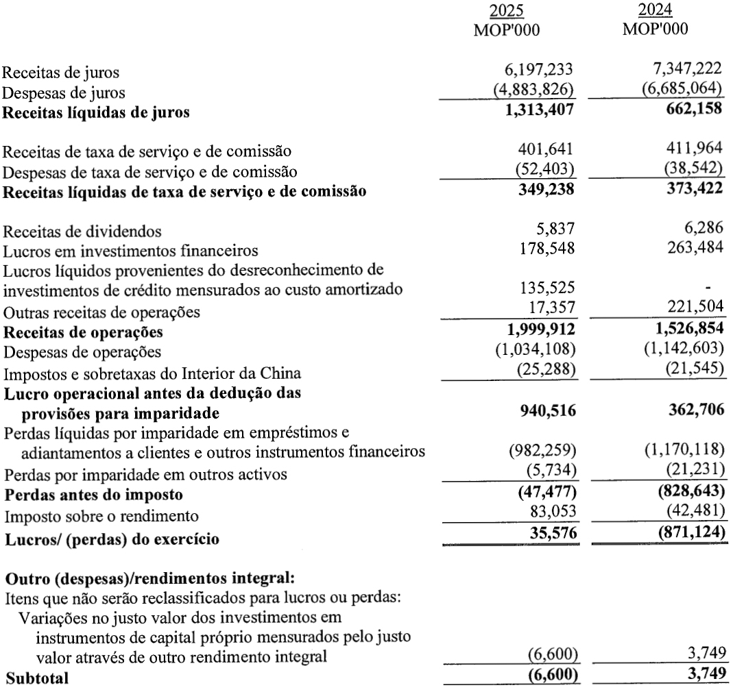 Sem dedução de perdas por imparidade, o lucro operacional do Banco da East Asia, Limitada, Sucursal de Macau (Sucursal de Macau), registou um crescimento, reflectindo a resiliência das actividades principais e o controlo rigoroso da rentabilidade dos custos. No entanto, devido à necessidade de preparar provisão para perdas de crédito previstas para determinados devedores, a Sucursal de Macau registou um prejuízo líquido no ano de 2025.