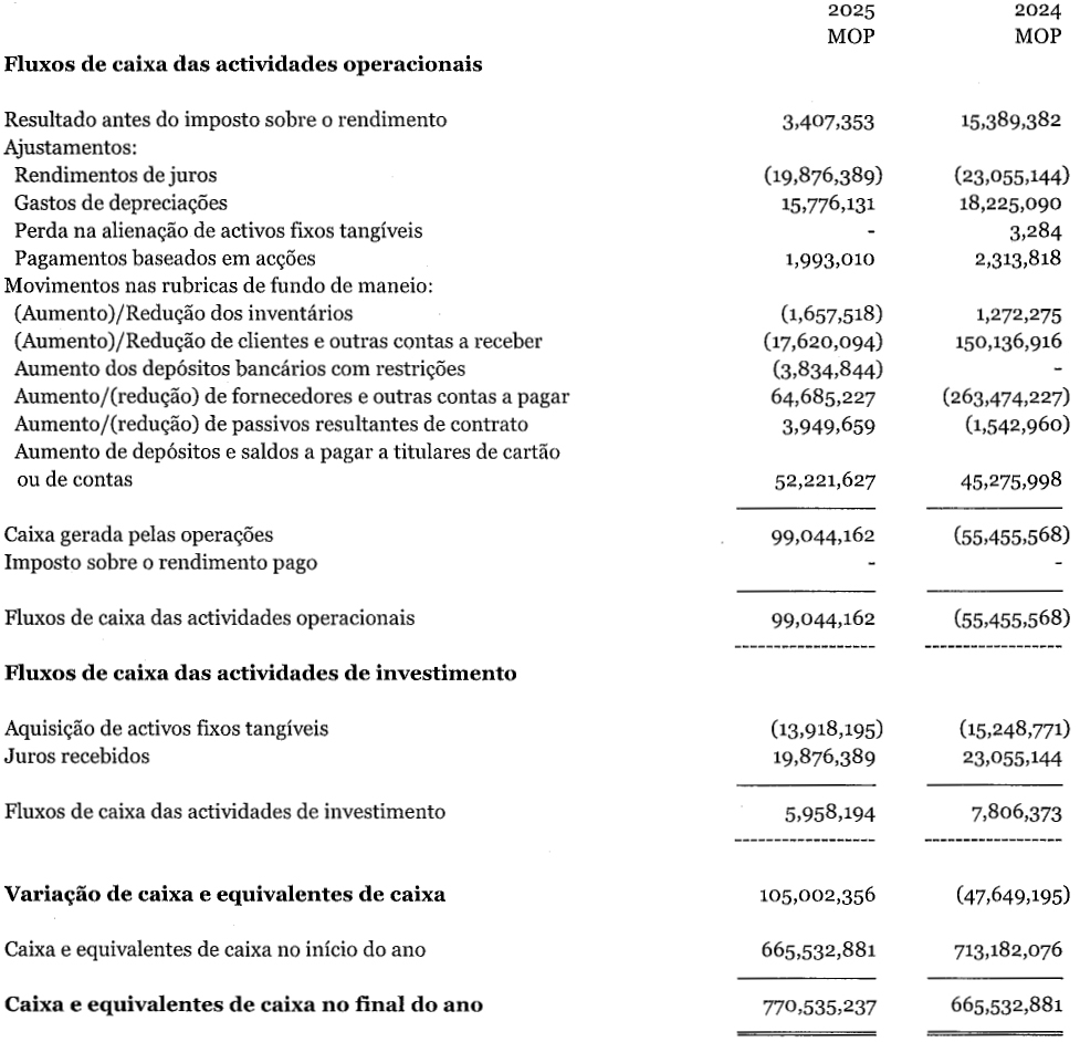 Em 2025, a receita líquida dos City Clubs foi de 112 milhões de patacas, um decréscimo de 48% relativamente ao ano anterior. O EBITDA Ajustado foi de (7) milhões de patacas, quando comparado com os 14 milhões de patacas de 2024.