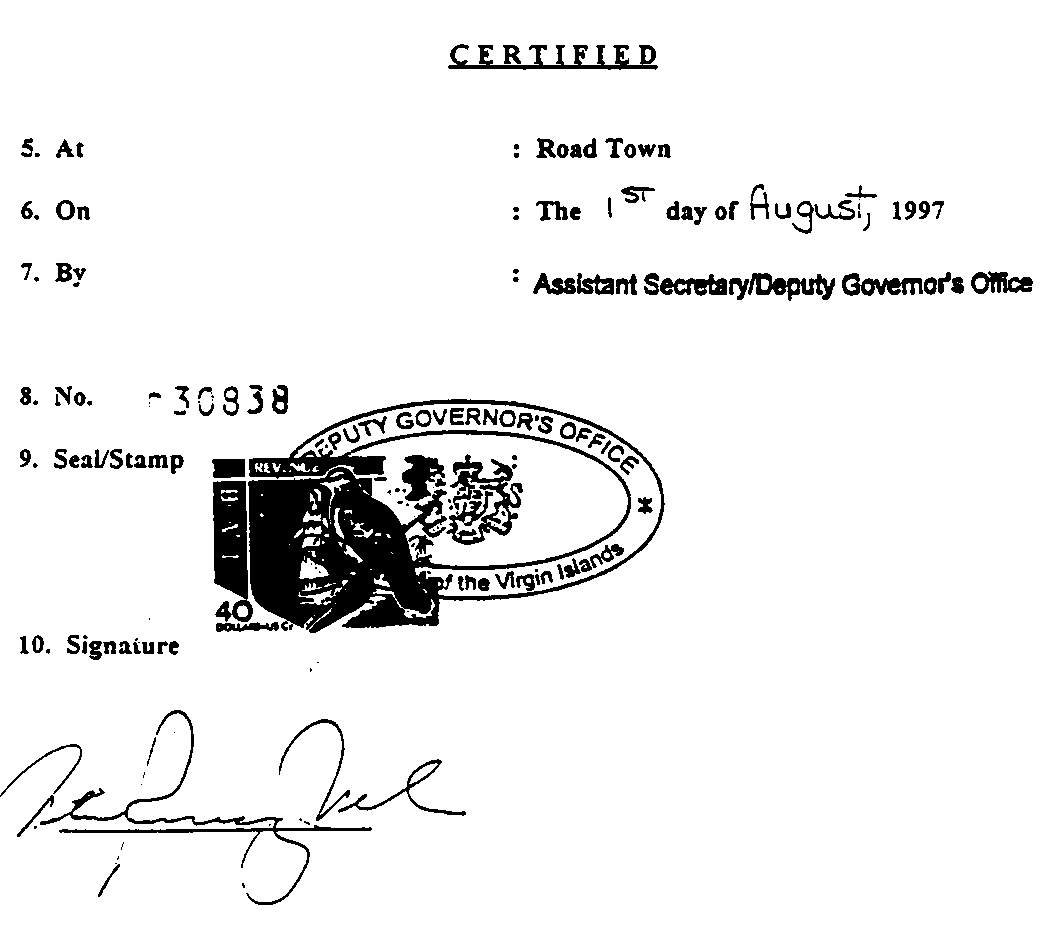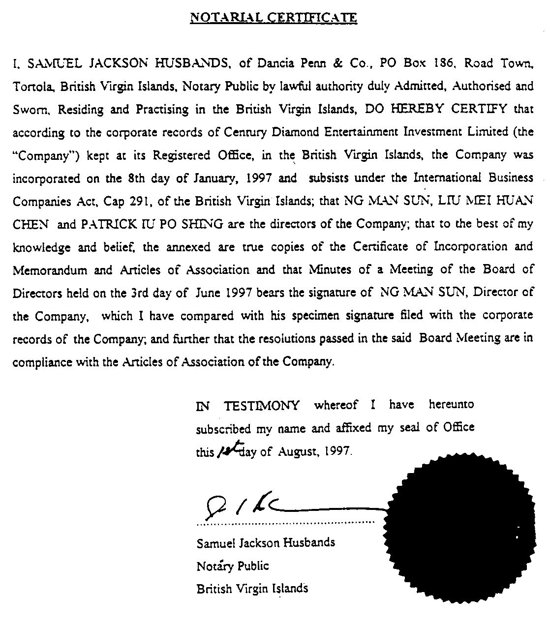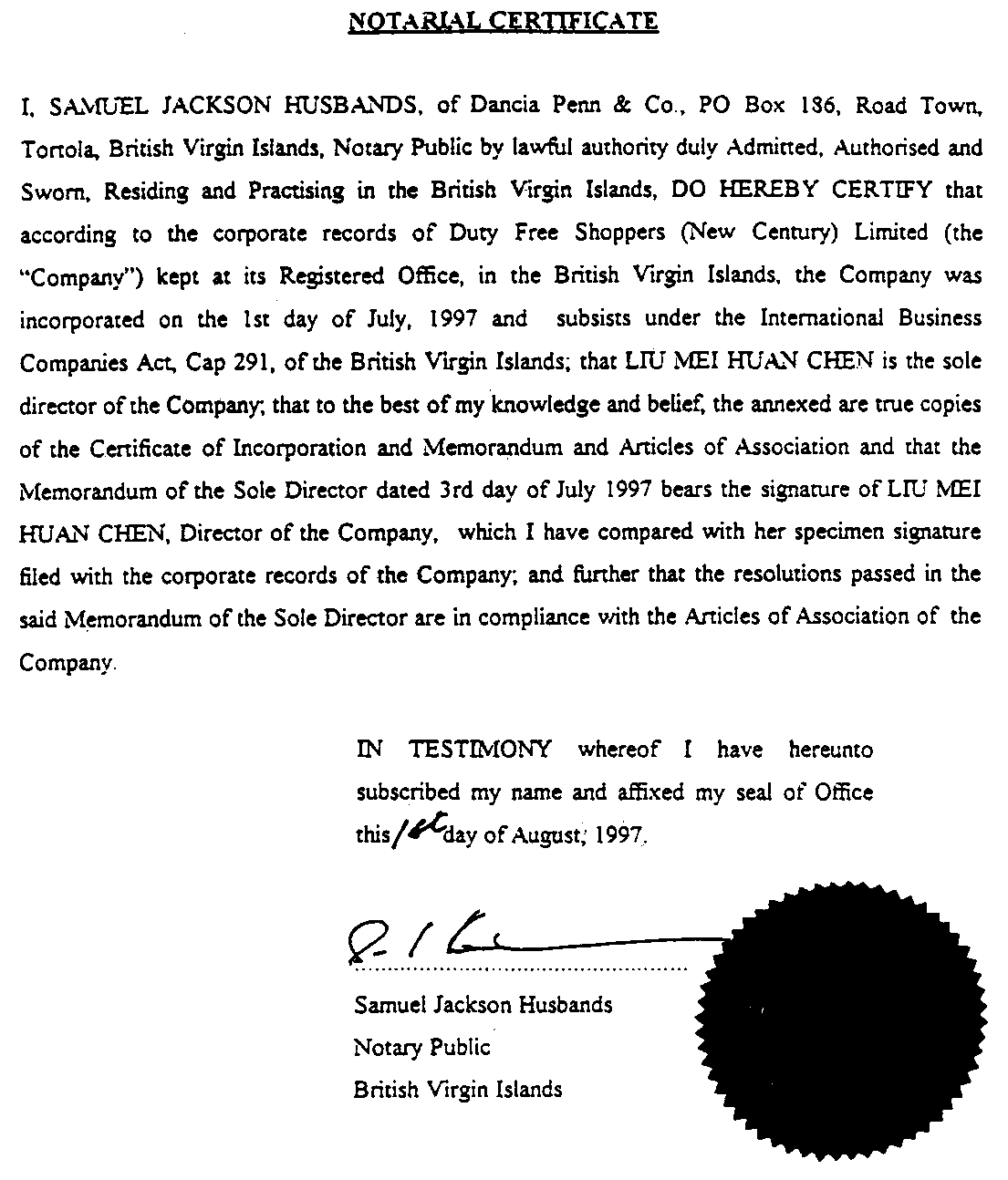 Cartório Privado, em Macau, aos vinte e um de Agosto de mil novecentos e noventa e sete. — O Notário, Alexandre Correia da Silva.
