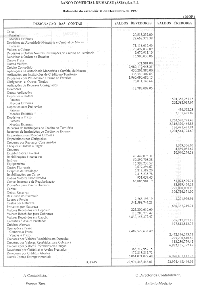 Macau, aos vinte de Janeiro de mil novecentos e noventa e oito. — Os Gerentes, (assinaturas ilegíveis).