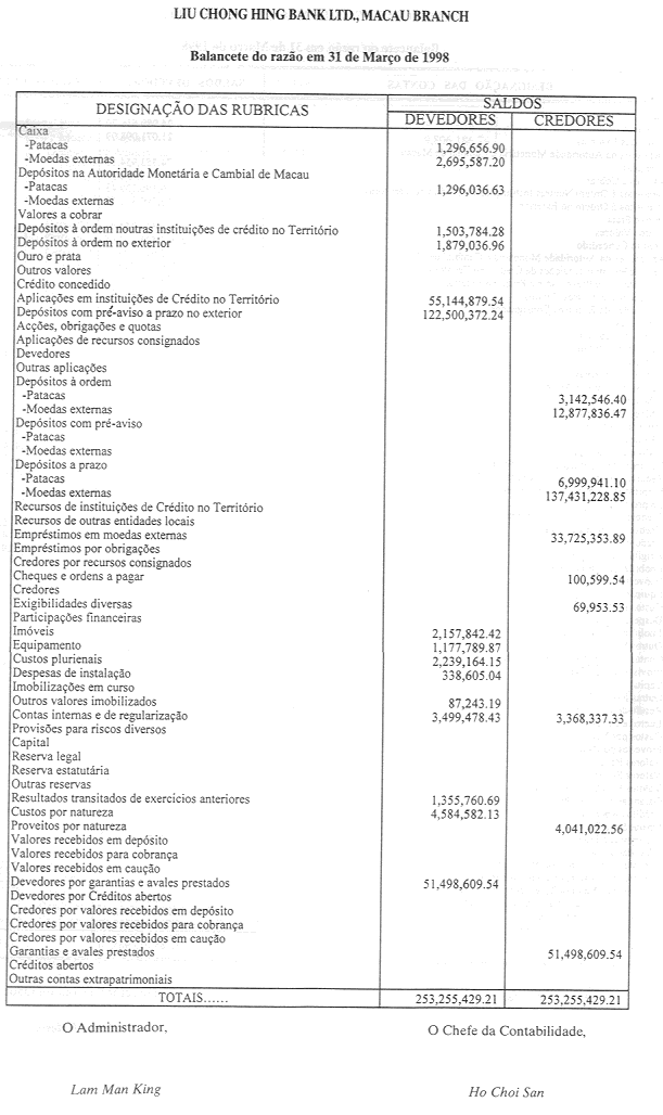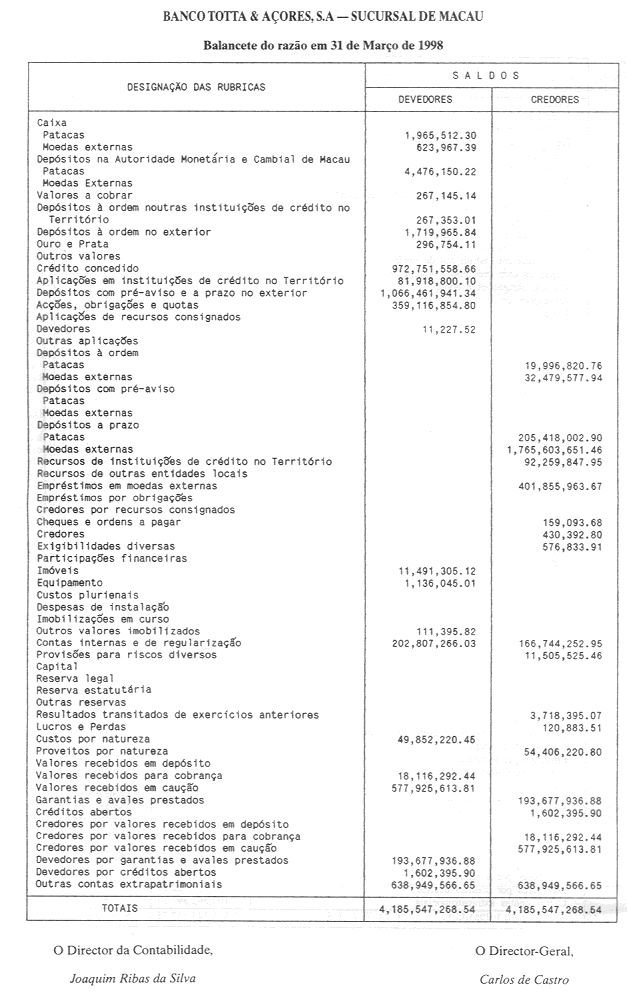 Cartório Privado, em Macau, aos vinte e quatro de Abril de mil novecentos e noventa e oito. — O Notário, João Miguel Barros.