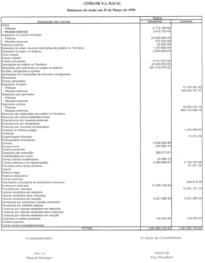 Cartório Privado, em Macau, aos catorze de Março de mil novecentos e noventa e oito. — A Notária, Irene Patrícia Manhão Basílio.