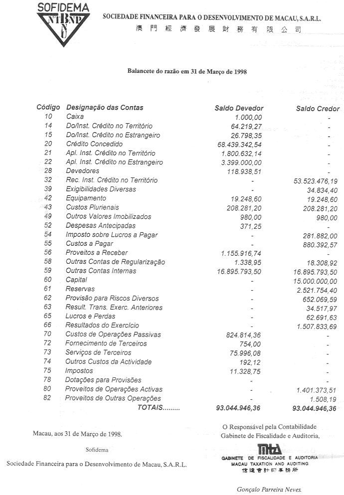 Cartório Privado, em Macau, aos dezassete de Abril de mil novecentos e noventa e oito. — O Notário, Philip Xavier.