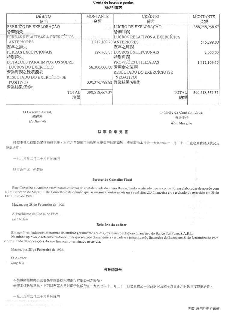 Cartório Privado, em Macau, aos oito de Maio de mil novecentos e noventa e oito. — O Notário, José Martins Sequeira e Serpa.