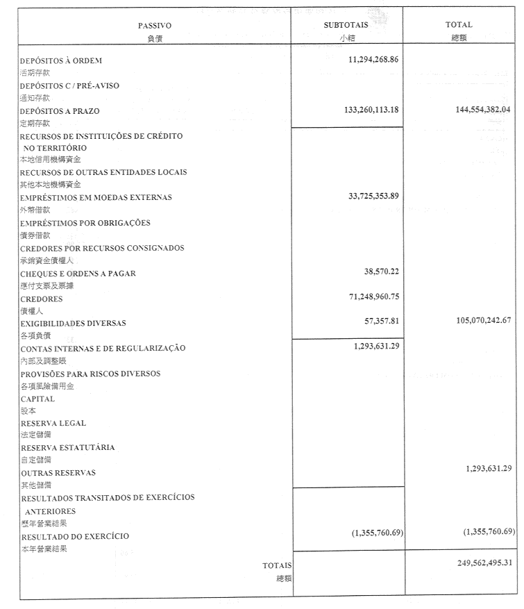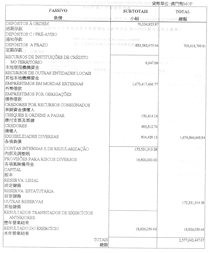 O capital social, integralmente subscrito e realizado em dinheiro, é de cem mil patacas, equivalentes a quinhentos mil escudos, nos termos da lei, e corresponde à sorna das seguintes quotas: