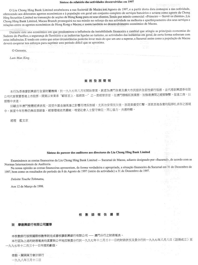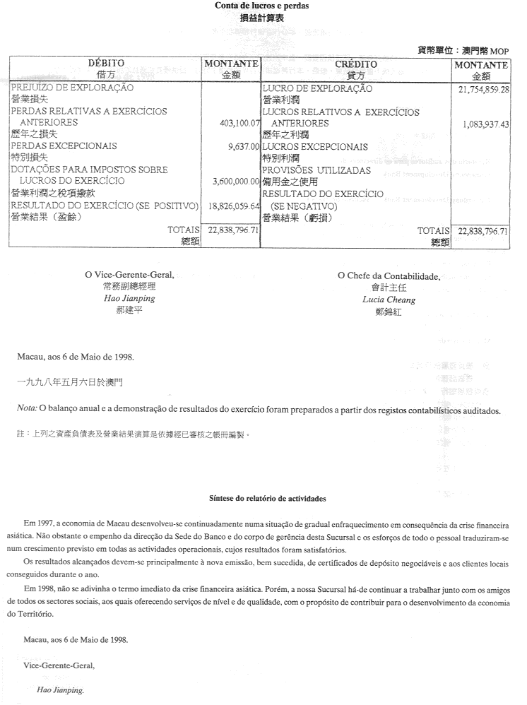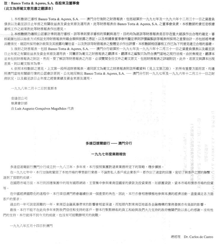 Cartório Privado, em Macau, aos vinte e dois de Maio de mil novecentos e noventa e oito. — O Notário, José Martins Sequeira e Serpa.