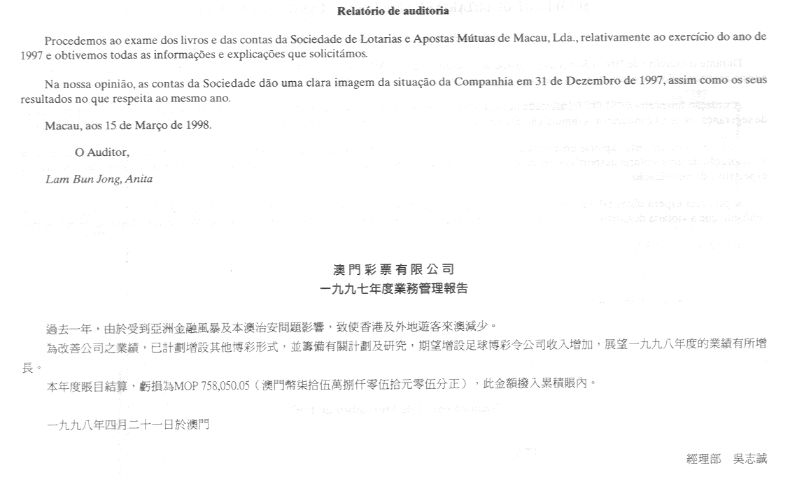 Primeiro Cartório Notarial, em Macau, aos vinte e cinco de Maio de mil novecentos e noventa e oito. ¡X A Primeira-Ajudante, Ivone Maria Osório Bastos Yee.