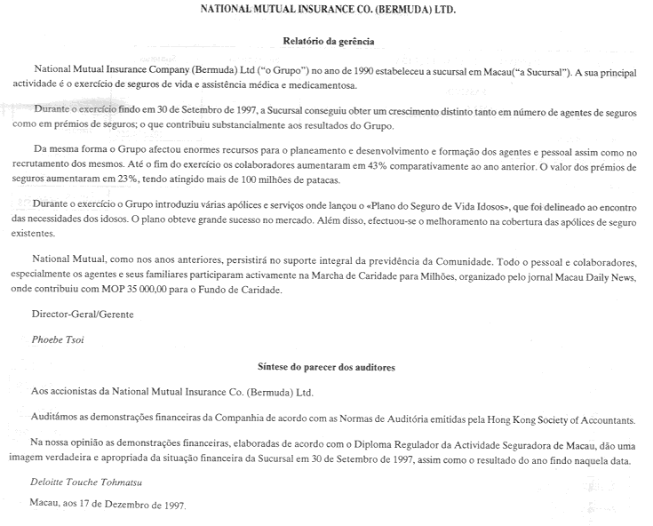 Cartório Privado, em Macau, aos quinze de Julho de mil novecentos e noventa e oito. — A Notária, Ana Soares.