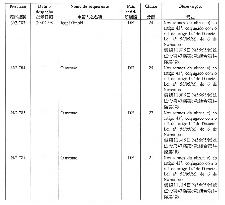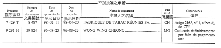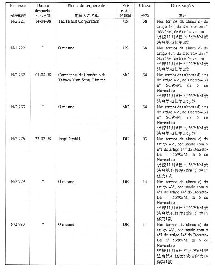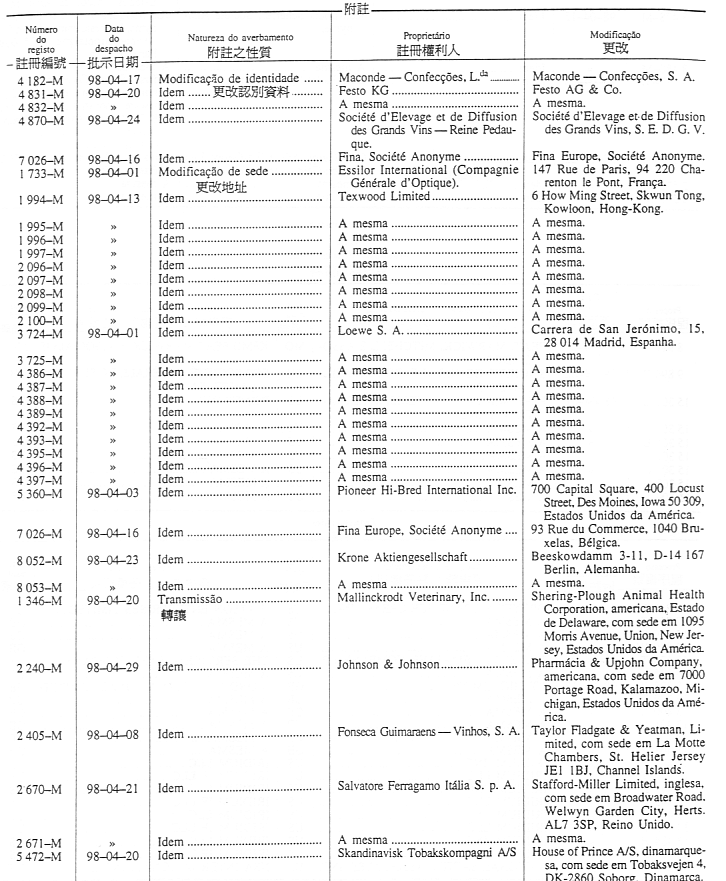 ¥Ó½Ð¤H¡GJing Qing-Fomento Predial, Comercial e Industrial, Importação e Exportação, Lda., Av. da Praia Grande, n.os 367 a 377, edifício Keng Ou, 23.º e 24.º andares, Macau.
