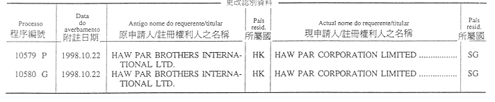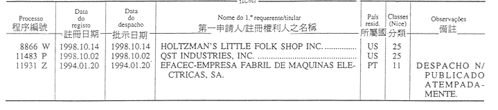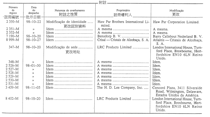 商標編號N/3 580及N/3581 — 申請人公司住所原文為:“751 Broad Street, New Ark, New Jersey 07 102, Estados Unidos da América”;