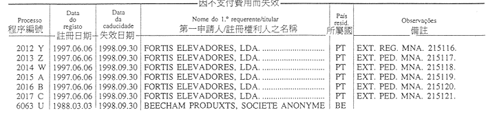 商標編號11 016-M至11 018-M—取消在因不支付費用而失效表內之刊登,商標仍然生效。