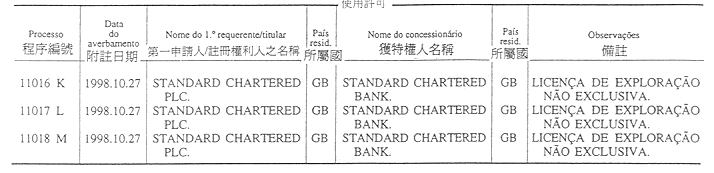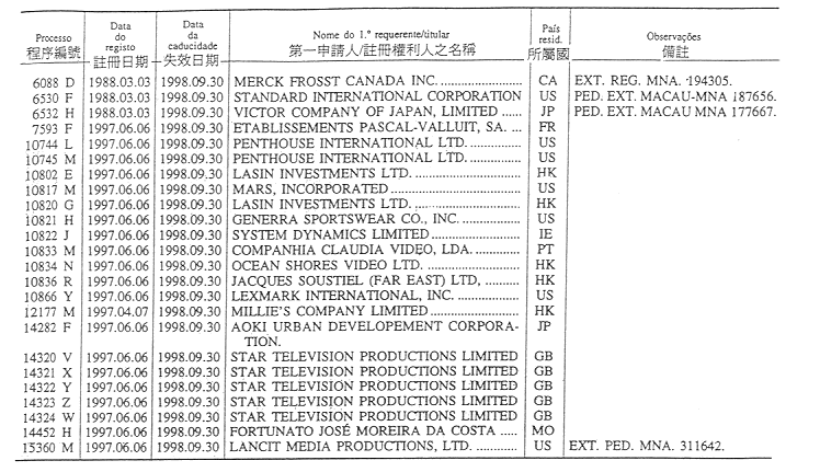 根據公布於一九九五年九月四日第三十六期第一組澳門政府公報內之一月二十四日第16/95號法令第二百九十二條第二款,以下公布批給、拒絕、續展、再次確認、失效,及附註之名單。