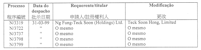 ¥Ó½Ð¤H¡GTeck Soon Hong, Limited, Rooms 901-905, 9th Floor, China Resources Bldg., 26 Harbour Road, Wanchai, Hong Kong.