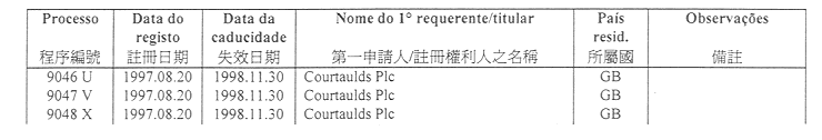 Àu¥ýÅv¤§n¨D¡G½Ð¨D¤é´Á¡G14/10/1998¡F©ÒÄݰê¡G¼w°ê¡F½Ð¨D½s¸¹¡G398 58 979.8¡C