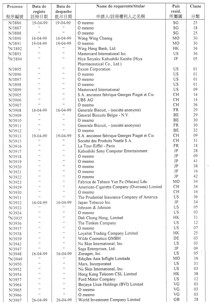 N.os 1 286, 1 287, 1 288, 1 291, 1 292, 1 294, 1 295, 1 297, 1 299, 1 302, 1 303, 1 304, 3 943, 3 946, 4 332, 9 144, 9 145, 9 146, 9 147, 9 225, 9 227, 9 228, 9 229, 9 231, 9 290, 9 536 e 9 537.