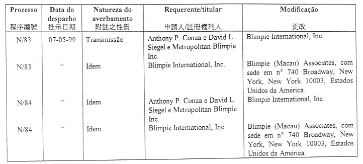 ¥Ó½Ð¤H¡GMcDonald's Corporation, One McDonald's Plaza, Oak Brook, Illinois 60523, Estados Unidos da América.