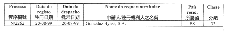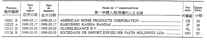 根據十一月六日第56/95/M號法令第十六條及第三十三條,以下公布澳門商標註冊之請求書,並按照相同法規第三十條及第三十四條,由通告公布日期開始計算三十日期限內,得提出產品及服務分類之聲明異議,及任何人認為倘給予註冊將對其造成損害得由通告公布日期開始計算九十日期限內提出聲明異議。