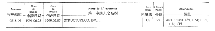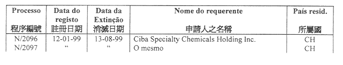 商標編號N/4 453至N/4 456及N/4 506至N/4 511— 在申請人,原文為:“Nu Skin International, Inc., One Nu Skin Plaza, 75 West Center, Provo, Utah 84 601, Estados Unidos da América”;