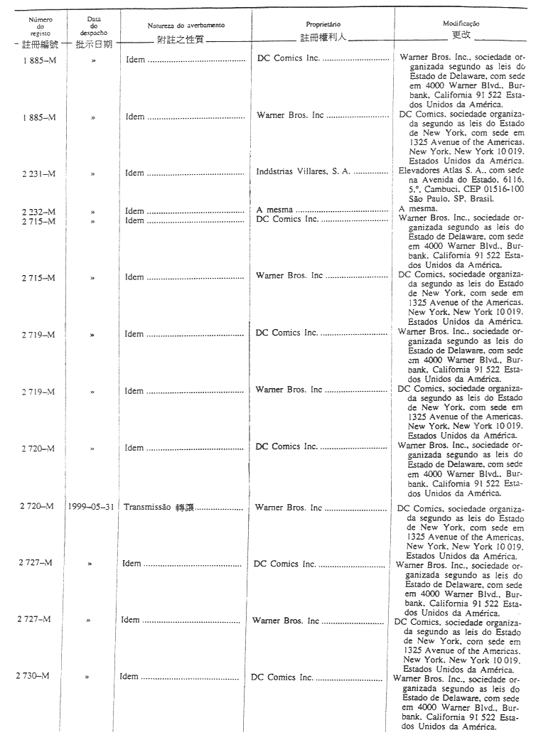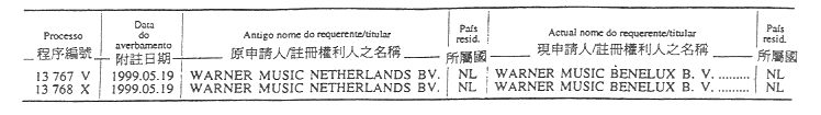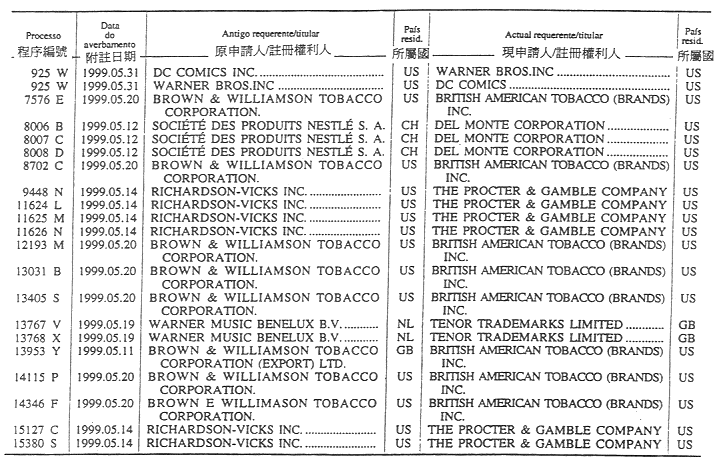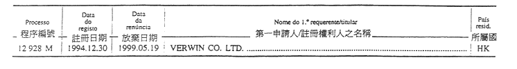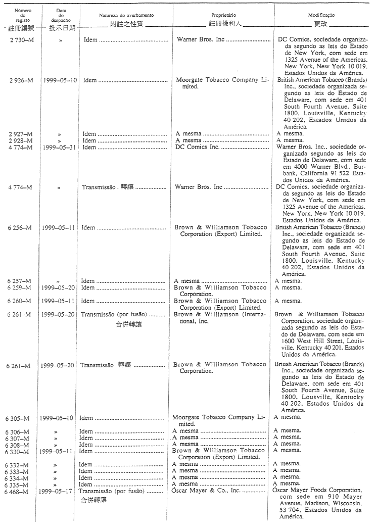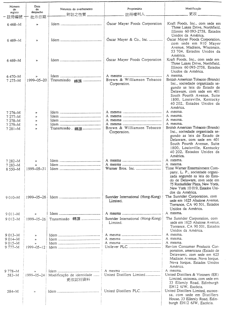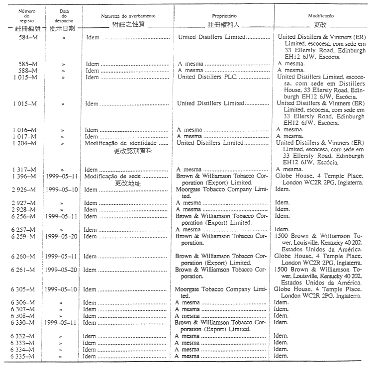 商標編號N/4 303及N/4 304 — 原文為:“Itochu Corporation; Descente Ltd.; e Toyo boseki Kabushiki Kaisha, 1-3, Kyutaro-Machi 4-chome, Chuo-Ku, Osaka, Japão.”;