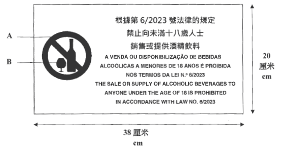 二、核准第6/2023號法律第五條第二款所指的禁止向未成年人銷售或提供酒精飲料的標誌式樣及警語內容,該標誌式樣及警語內容分別載於作為本批示組成部分的附件二及附件三。