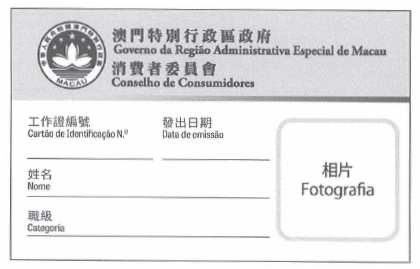 二、上款所指的工作證為白色及綠色,尺寸為85毫米×54毫米,左上方為澳門特別行政區區徽。