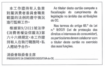 一、核准消費者委員會執行監察職務的工作人員的工作證式樣,有關式樣載於作為本批示組成部分的附件。